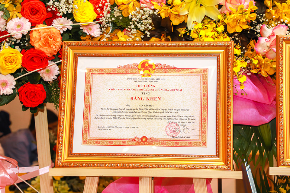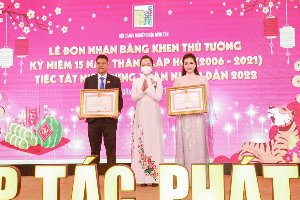 Trong khuôn khổ kỷ niệm 15 năm thành lập Hội Doanh nghiệp quận Bình Tân, đánh dấu chặng đường nỗ lực vì sứ mệnh kết nối và hỗ trợ các doanh nghiệp trên địa bàn cùng phát triển được diễn ra ngày 21.1.2022, Hội Doanh nghiệp quận Bình Tân cùng nhiều cá nhân, doanh nghiệp trong Hội đã vinh dự được trao tặng Bằng khen của Thủ tướng Chính phủ.